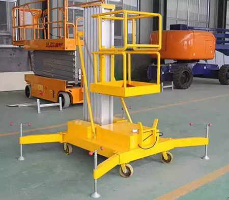 鋁合金液壓升降機耗電少、無污染、工作時不傷地面,可用于貼墻工作及探出作業,工作無死角。鋁合金液壓升降機廣泛適用于星級酒店,大型超市等各行業大廳、廠房內的高空清潔和電線、照明安裝維護類高空作業,鋁合金液壓升降機根據其自身升高度可分為:單桅柱式升降機(4-10米),雙桅柱式升降機(8-14米)跟多桅柱式升降機(12-22米)。