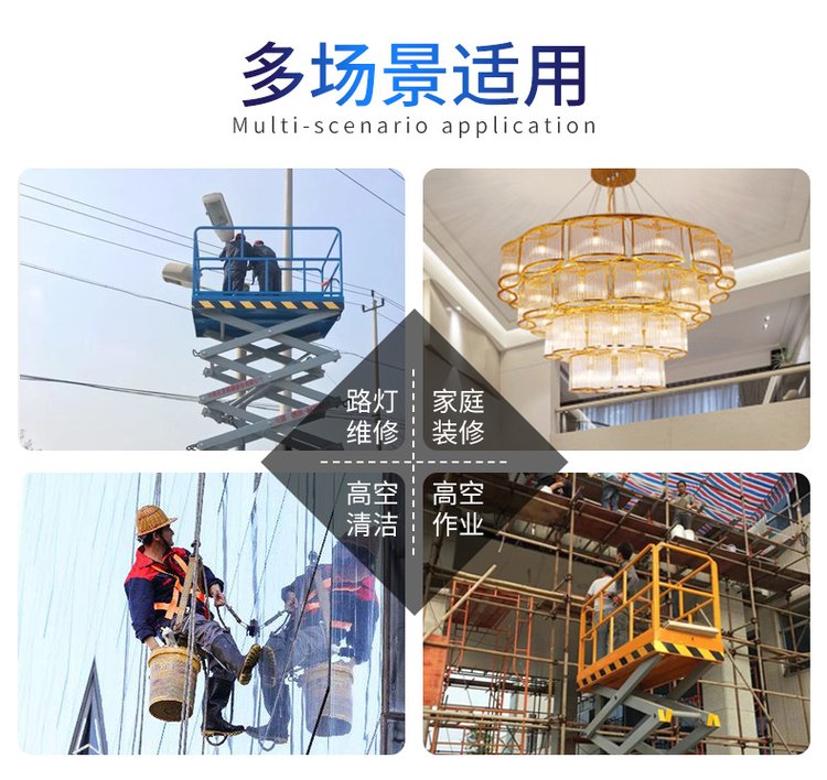 移動剪叉式升降機是用途廣泛的高空作業(yè)裝備,該產(chǎn)品適用于各行業(yè)高處設備安裝、檢驗、維修、裝飾等可移動性高空作業(yè)。剪叉式的機械結構,使平臺升起后有很好的穩(wěn)定性;寬大的作業(yè)平臺和較大的承載能力,使高空作業(yè)平臺適用范圍更大,并且適合多人作業(yè),使高處作業(yè)更加高效并且安全。