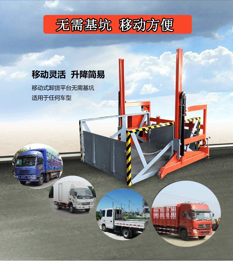 移動裝卸平臺既摒棄了原有移動登車橋耗材多,造價高的缺點,又摒棄了固定登車橋使用場所的局限性,移動裝卸貨平臺是集二者的優點于一身。它裝有4個腳輪,2個聚氨酯輪和2個萬象輪,推行移動方便靈活,相比固定卸貨平臺,繼而它的適用范圍更廣,它的使用將為客戶大大節省開支。